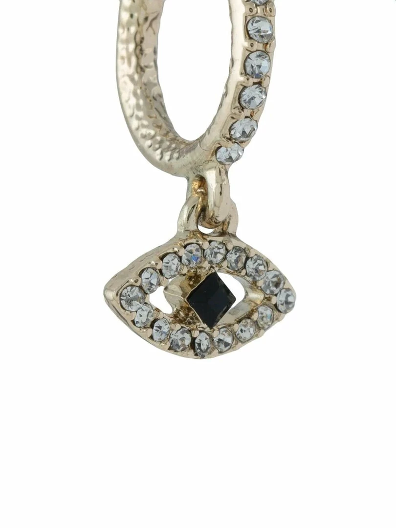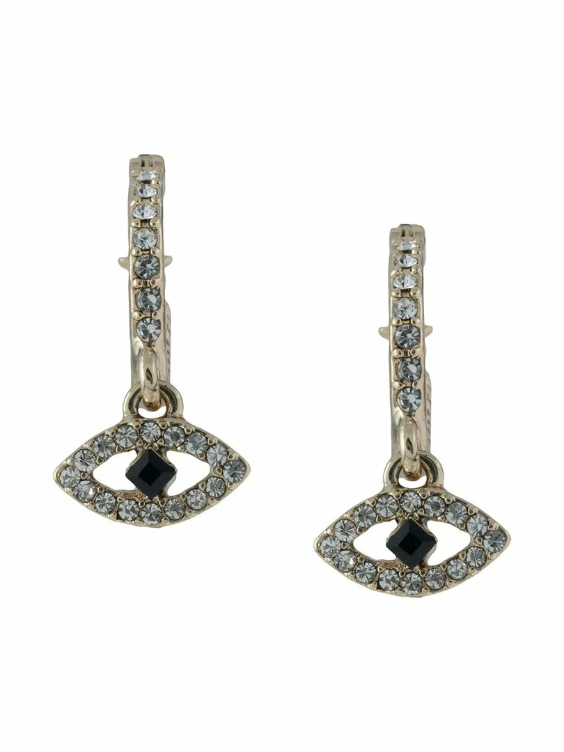 Add a touch of glam to your next look with the delicate Evil Eye Drop Earrings featuring crystal encrusted gold toned hardware and an evil eye design.
