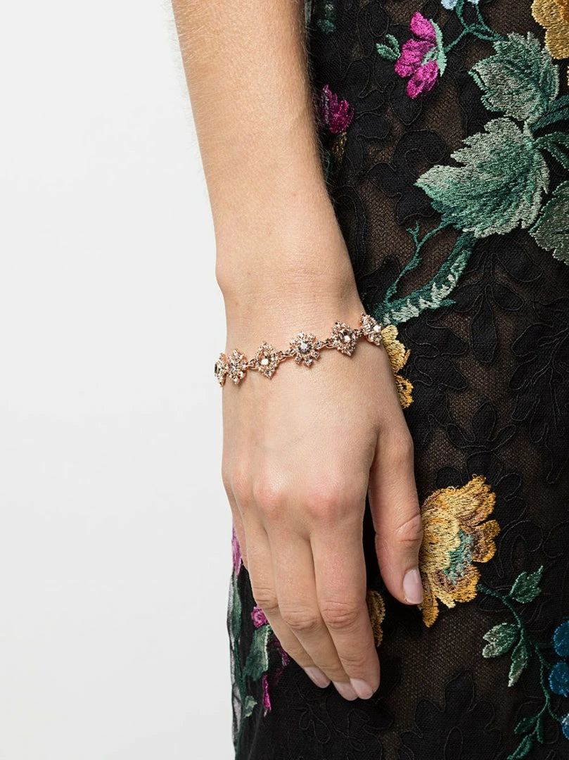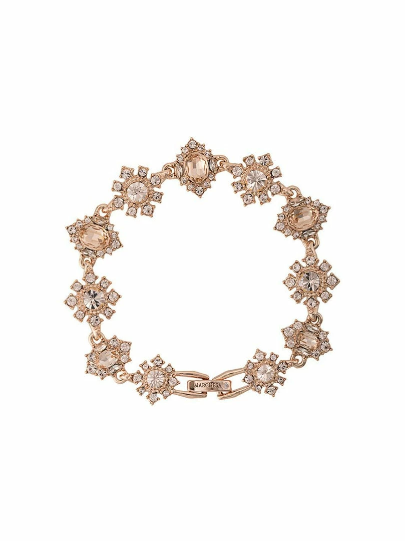 Add a dazzling touch to any outfit with the Floral Bracelet. Featuring striking rose gold and silk tone crystal embellishments, and a clasp fastening.