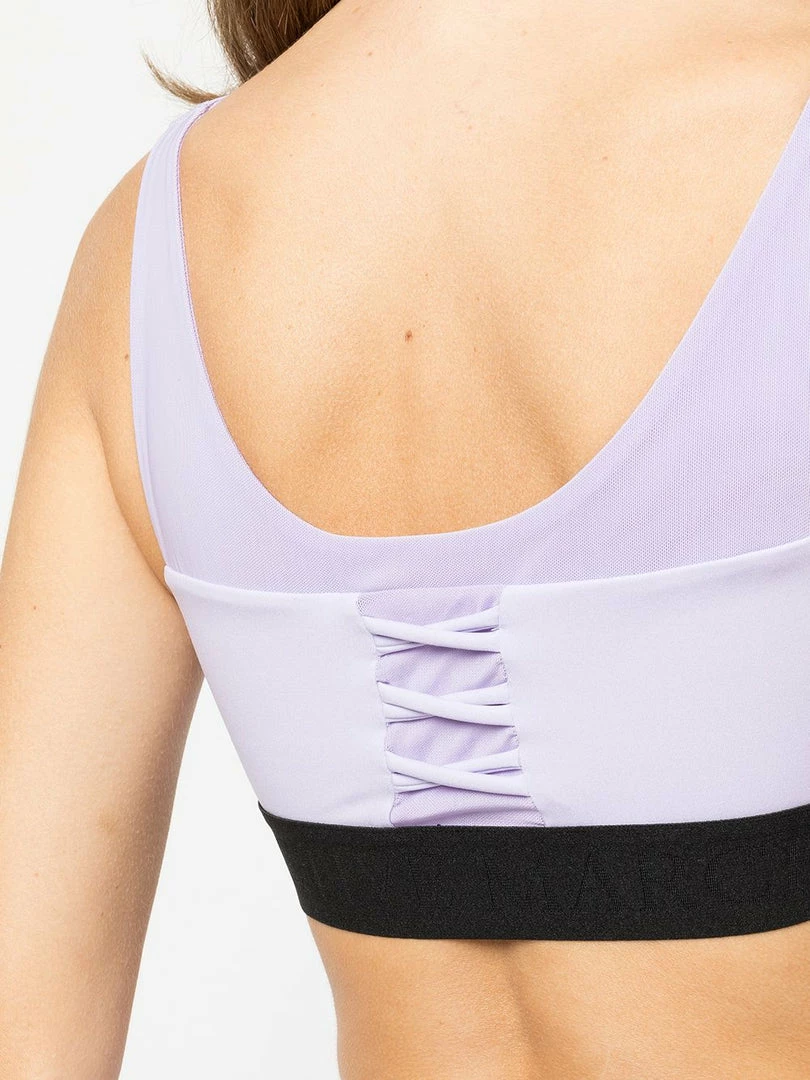 The Coco Bra features a sleeveless design, a scoop neckline, a sheer panel and a lace-up detail in the back. Lightweight and smooth compression fit, pieced in sheer power mesh, super smooth performance fabric, wide soft elasticized underband.