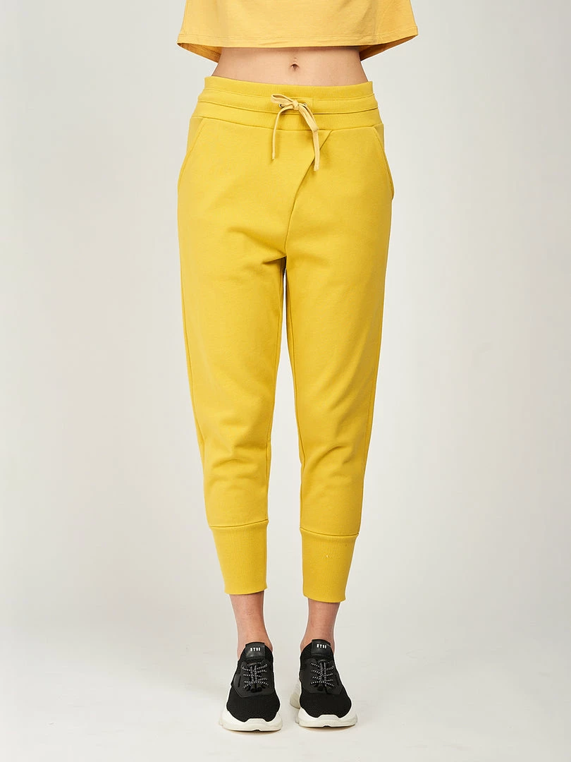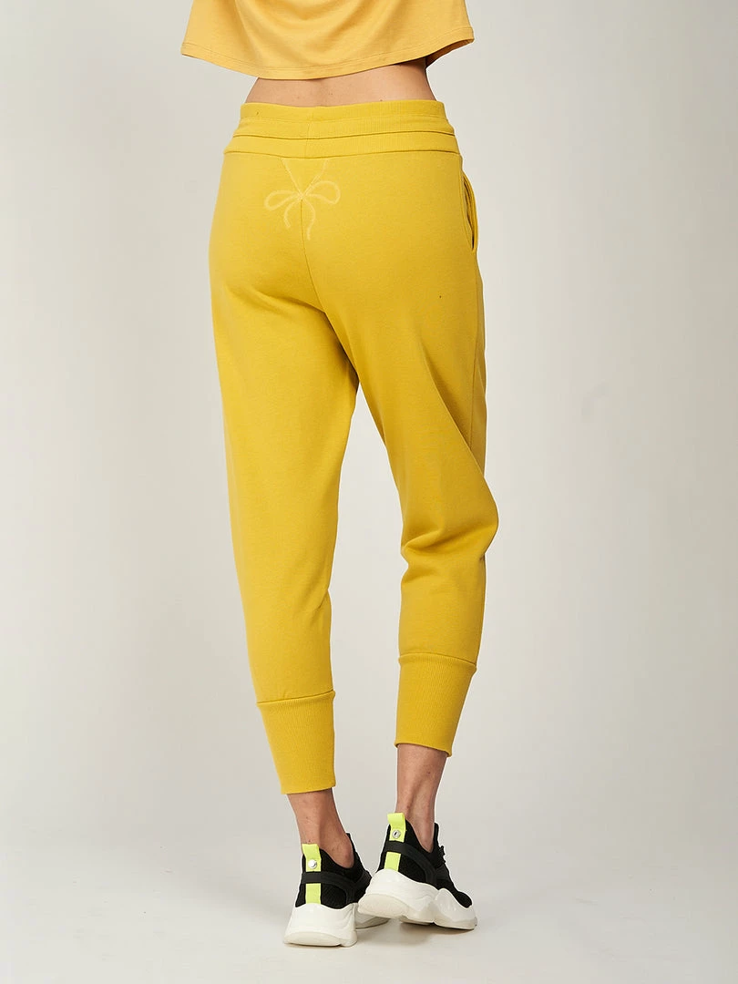 The Erika Sweatpant is a modern take on the jogger, with an asymmetrical rise, ribbon detailing at the back, and 7/8 length complete with a wide cuff. Keep yourself comfortable in these luxury sweatpants that don’t sacrifice style. These can be worn while at home, on trips to the grocery store, or during any sort of activity where you might want to keep warm. Declare your dedication to a balance of comfort and fashion in these pants.
