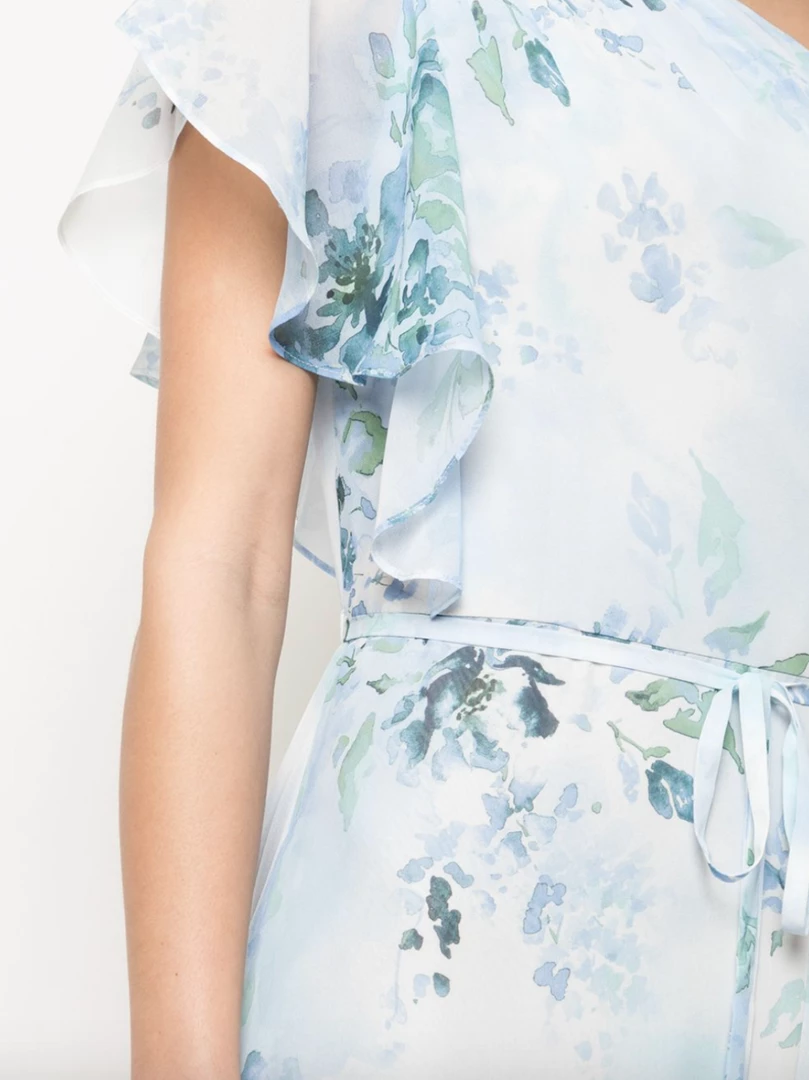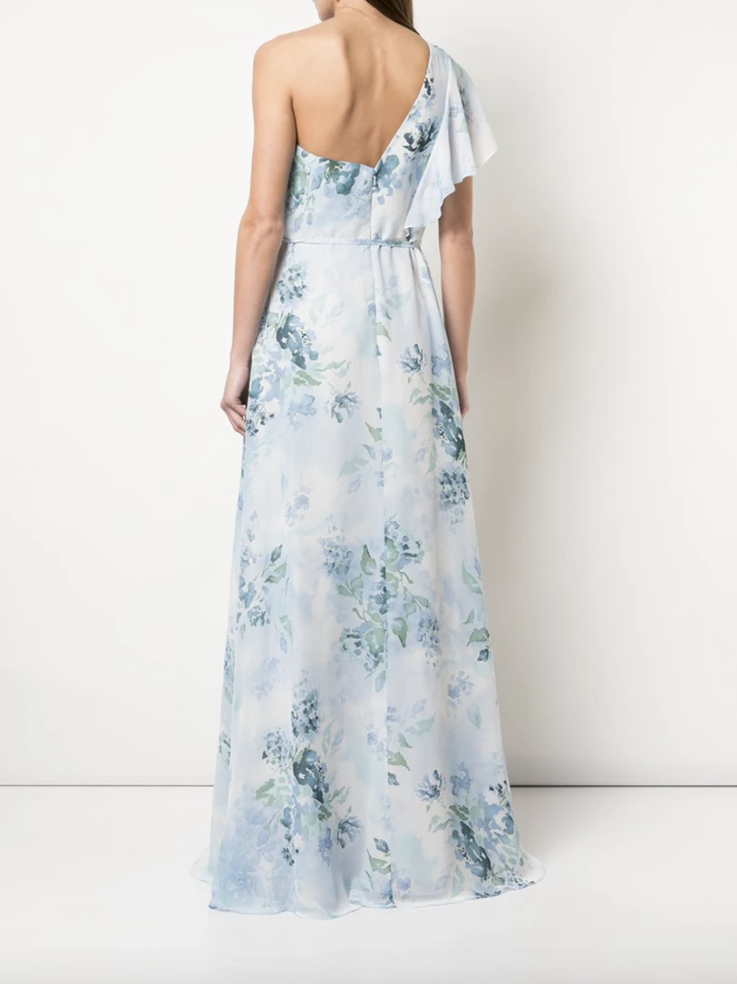 All eyes will be on you at your next event in the Consenza Printed gown. Featuring a dreamy hue of plisse fabric, an enticing one shoulder ruffle, and a delightful leg slit.