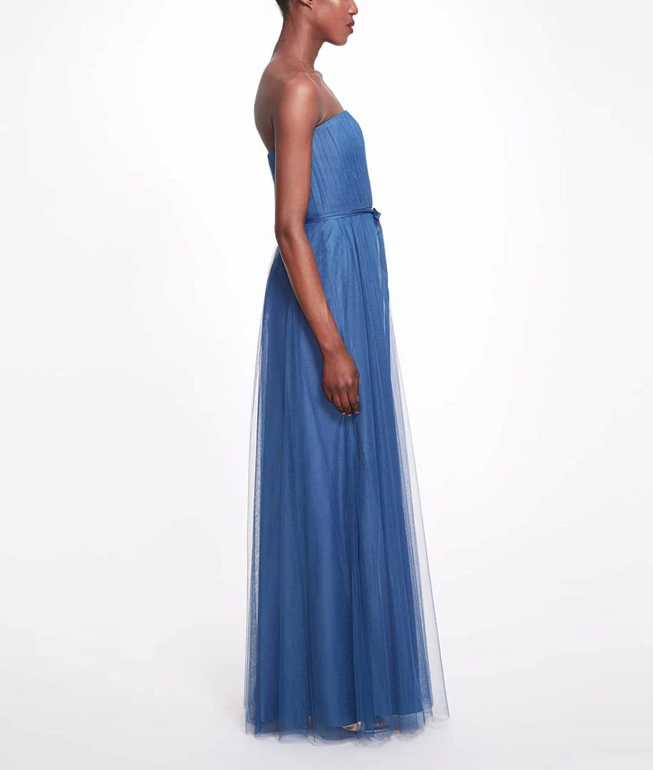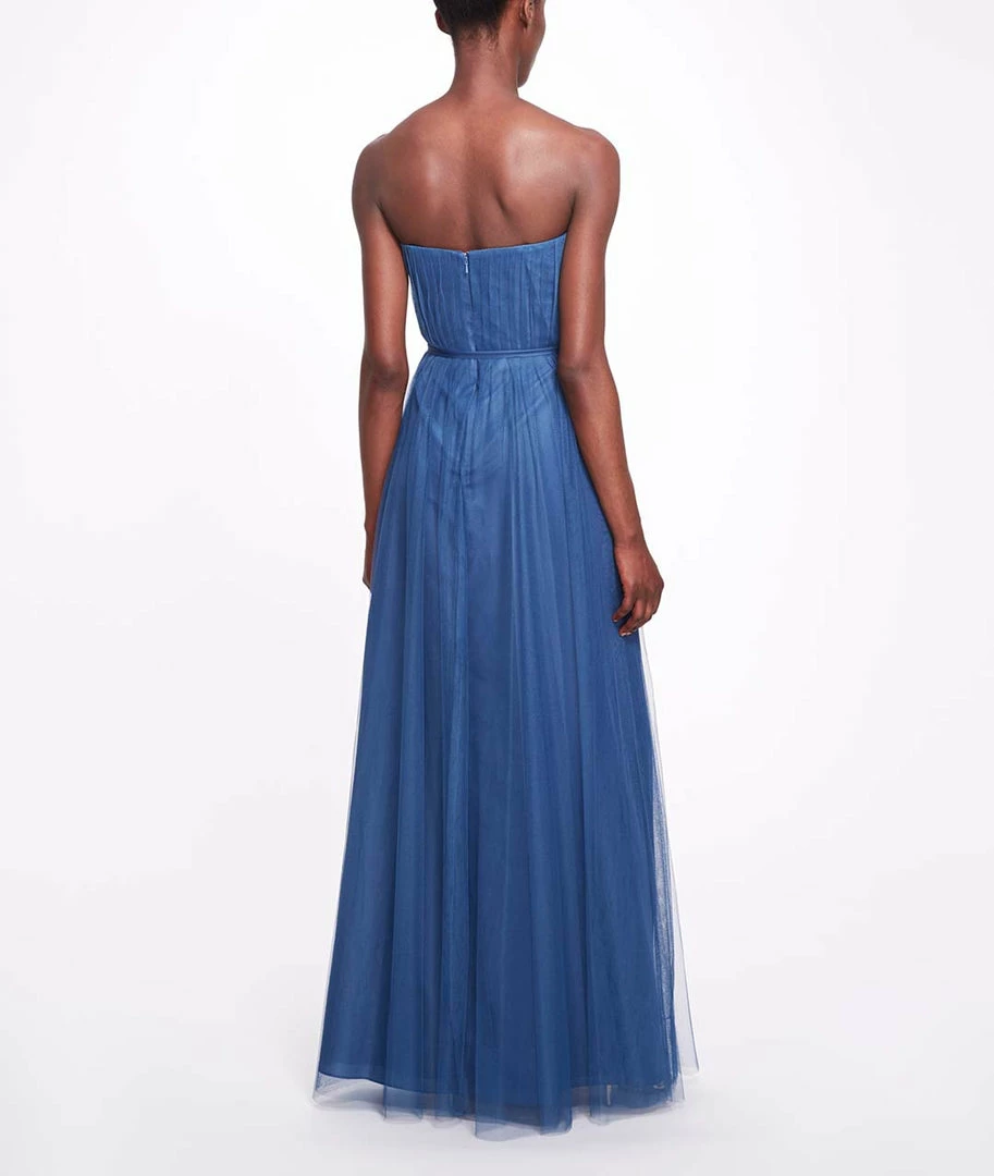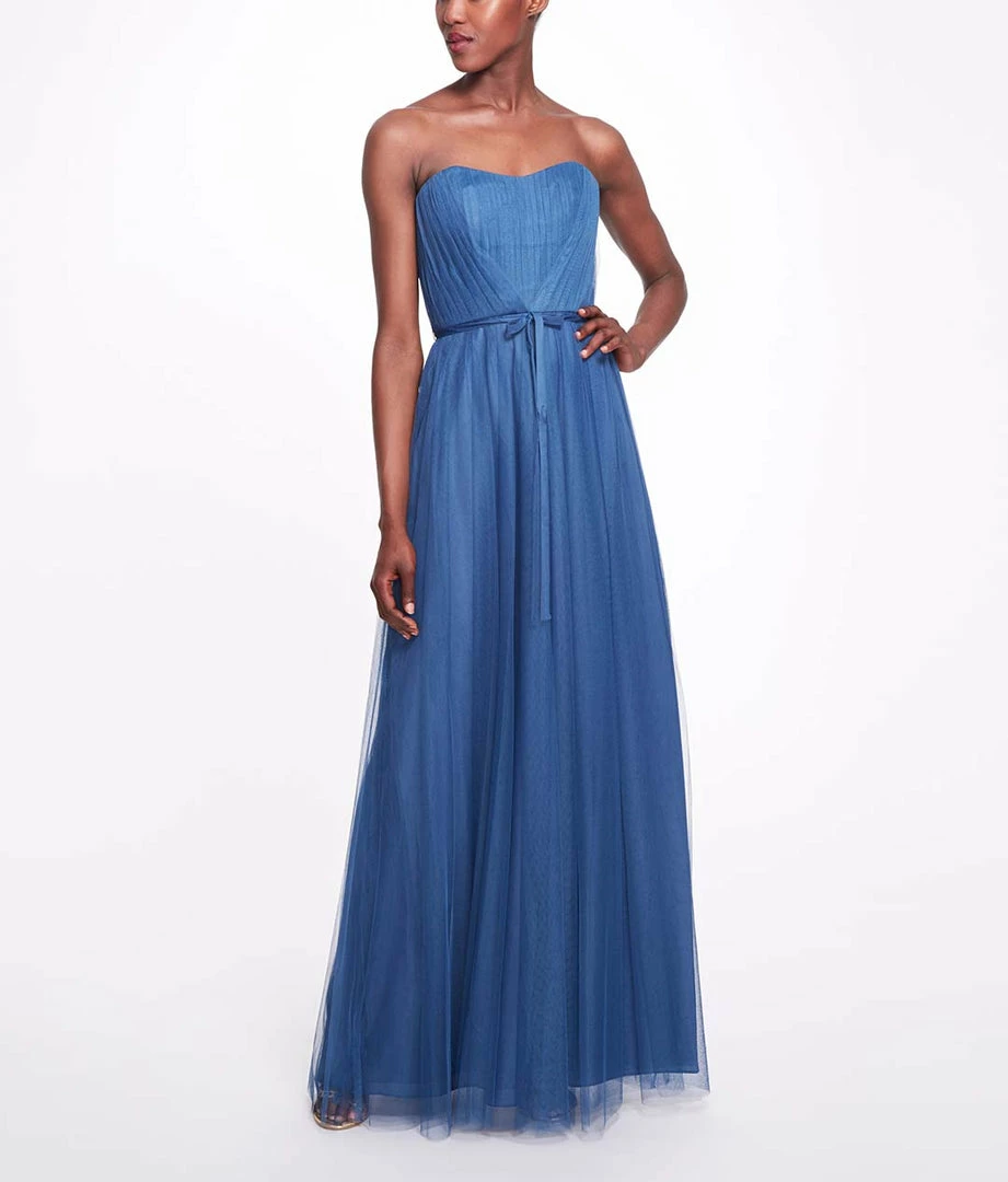 Modern romance becomes an effortless reality in the Imola gown. Featuring an amorous pleated bodice, a lush ribbon belt at the waist, and a soft sweetheart neckline.