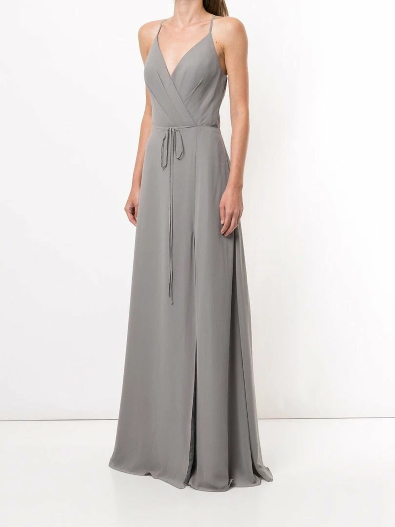 Timeless elegance is always in style with the Sessa Gown. Featuring a graceful plunge v-neck, a polished cut out back detail, and a dainty waist tie.Â