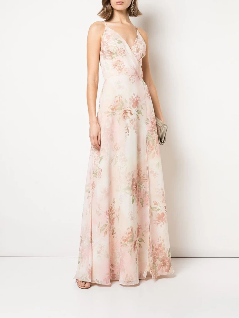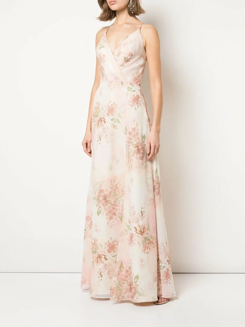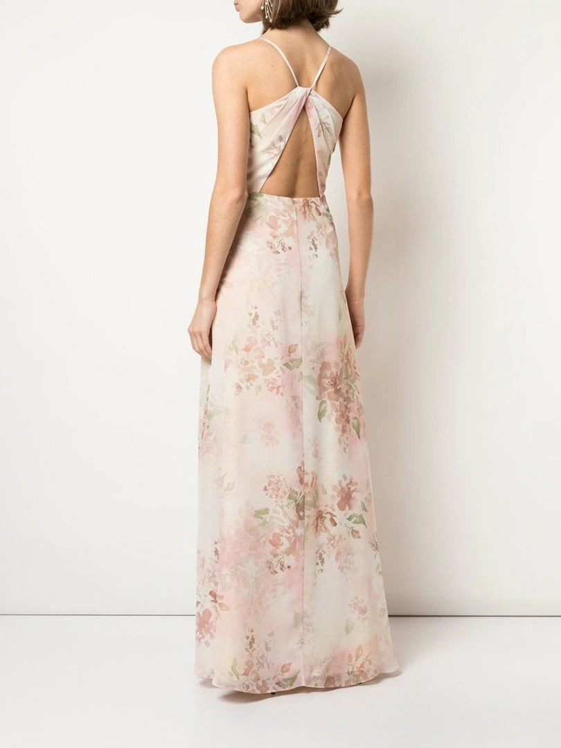 Timeless elegance is always in style with the Sessa Gown. Featuring a graceful plunge v-neck, a polished cut out back detail, and a dainty waist tie.Â
