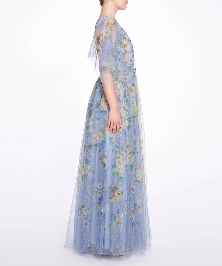 Bloom all year round in the Varese printed gown. Featuring a romantic floral print, a graceful one-shoulder design, and a charming handkerchief flutter sleeve.