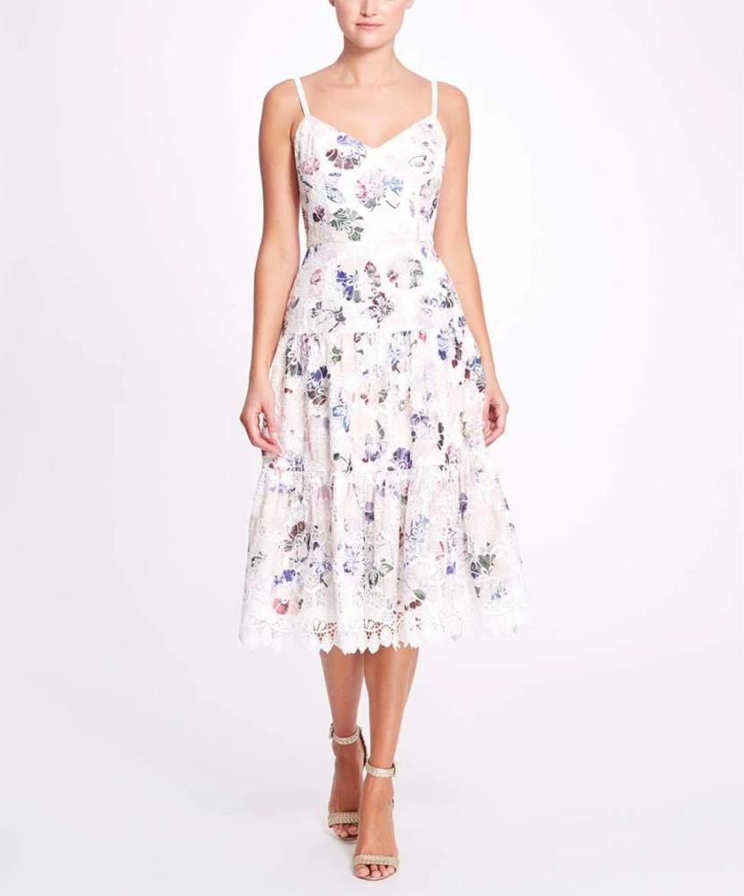 Marchesa Notte Dutch Floral Printed Chiffon Guipure Midi Dress