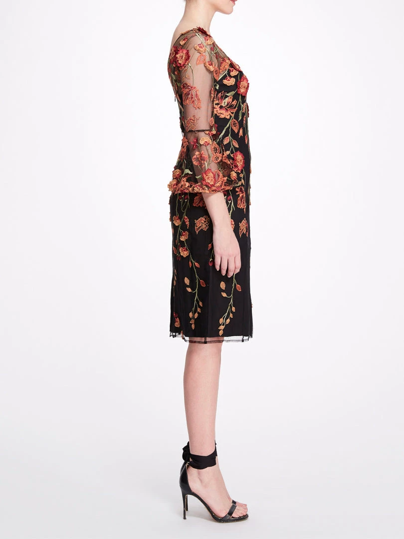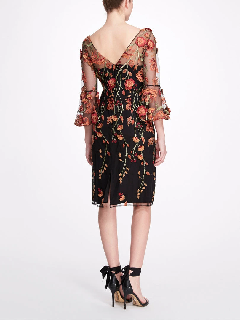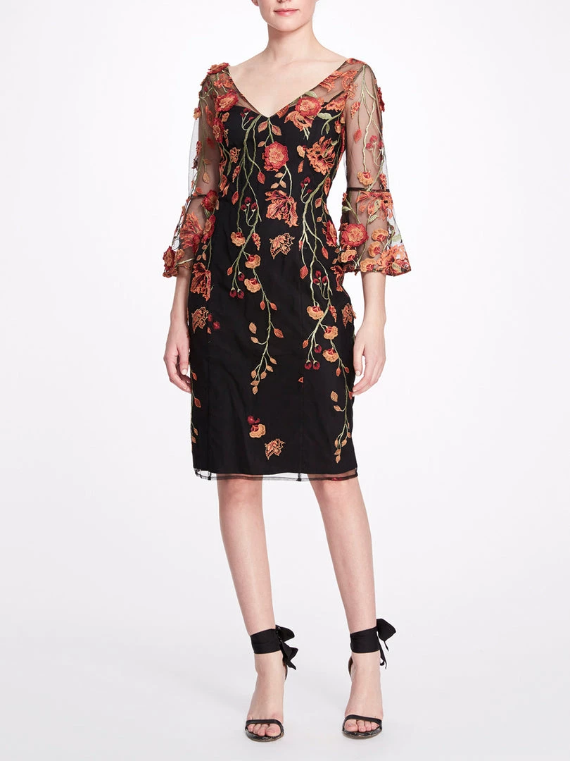 Marchesa Notte Embroidered Floral Cocktail Dress