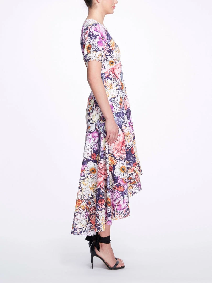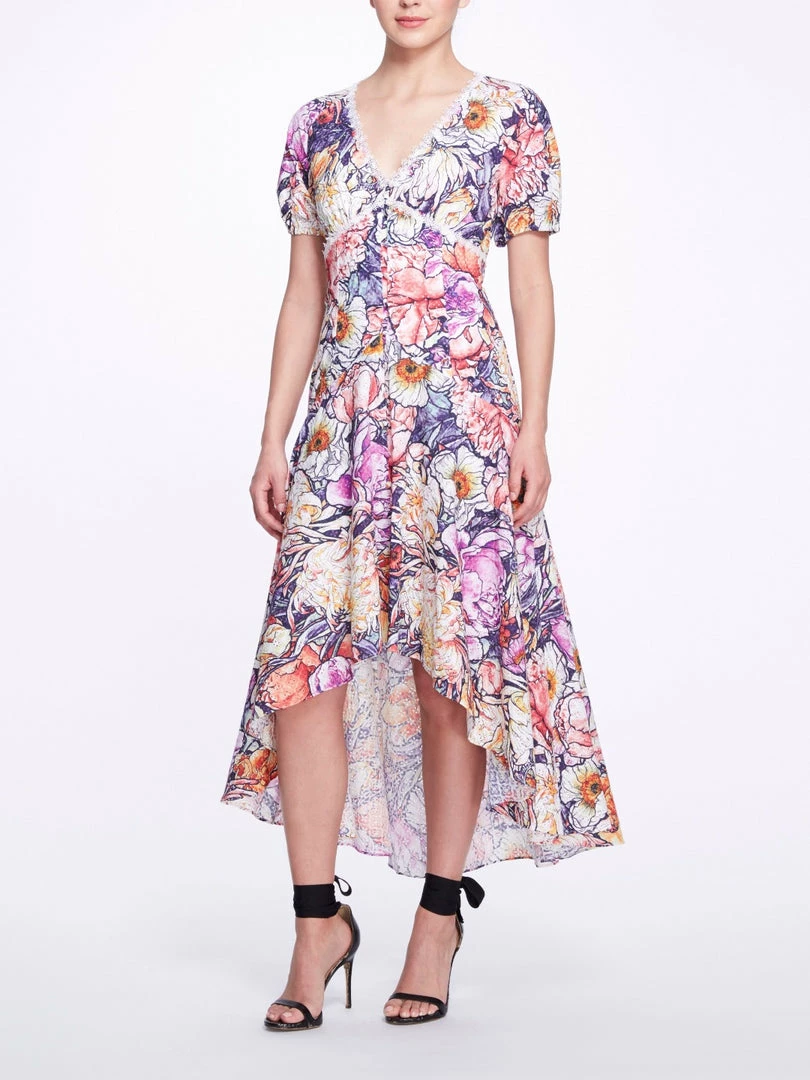Marchesa Notte Floral Eyelet High Low Midi Dress