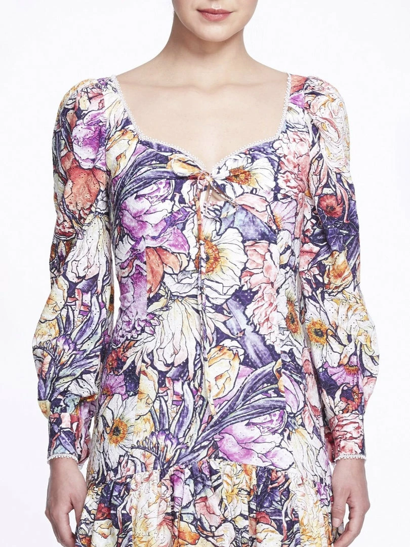 Marchesa Notte Floral Long Sleeve Mini Dress