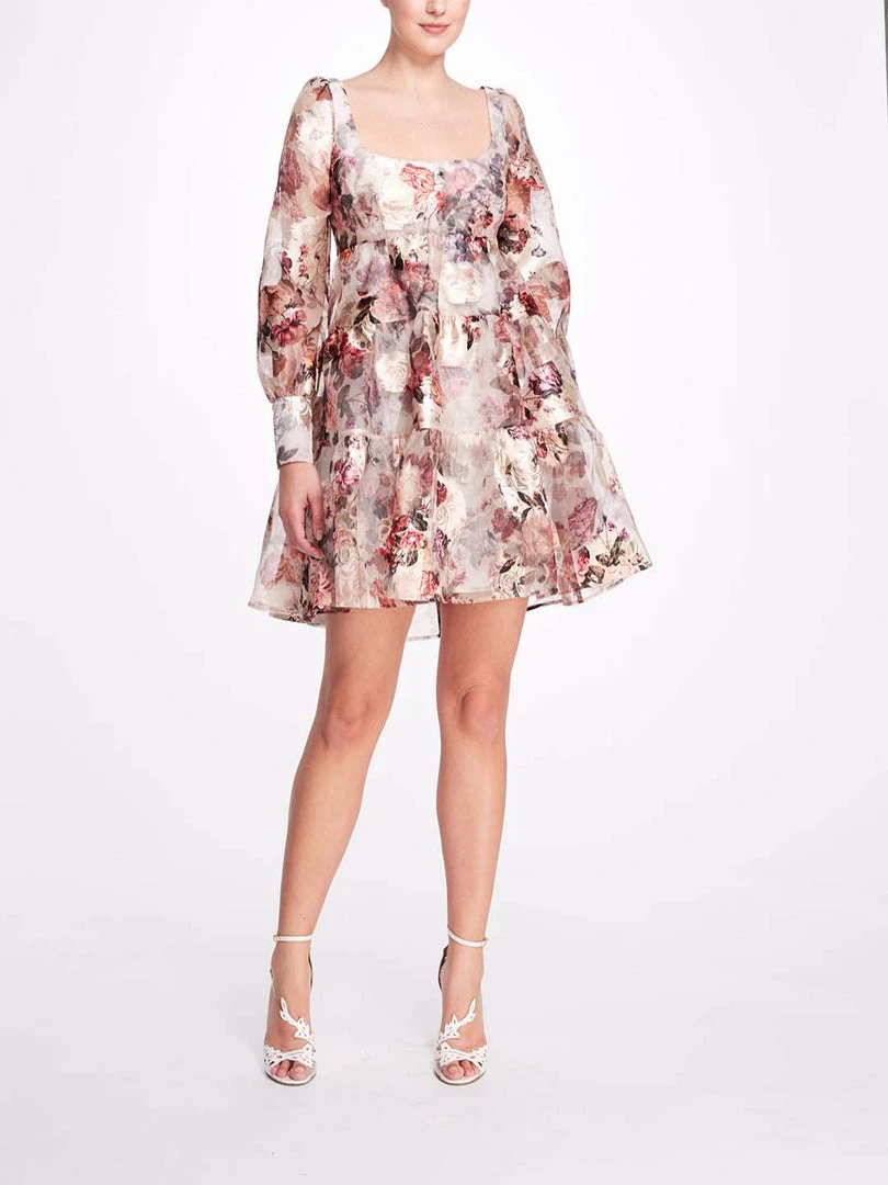 Marchesa Notte Floral Printed Scoop Neck Dress