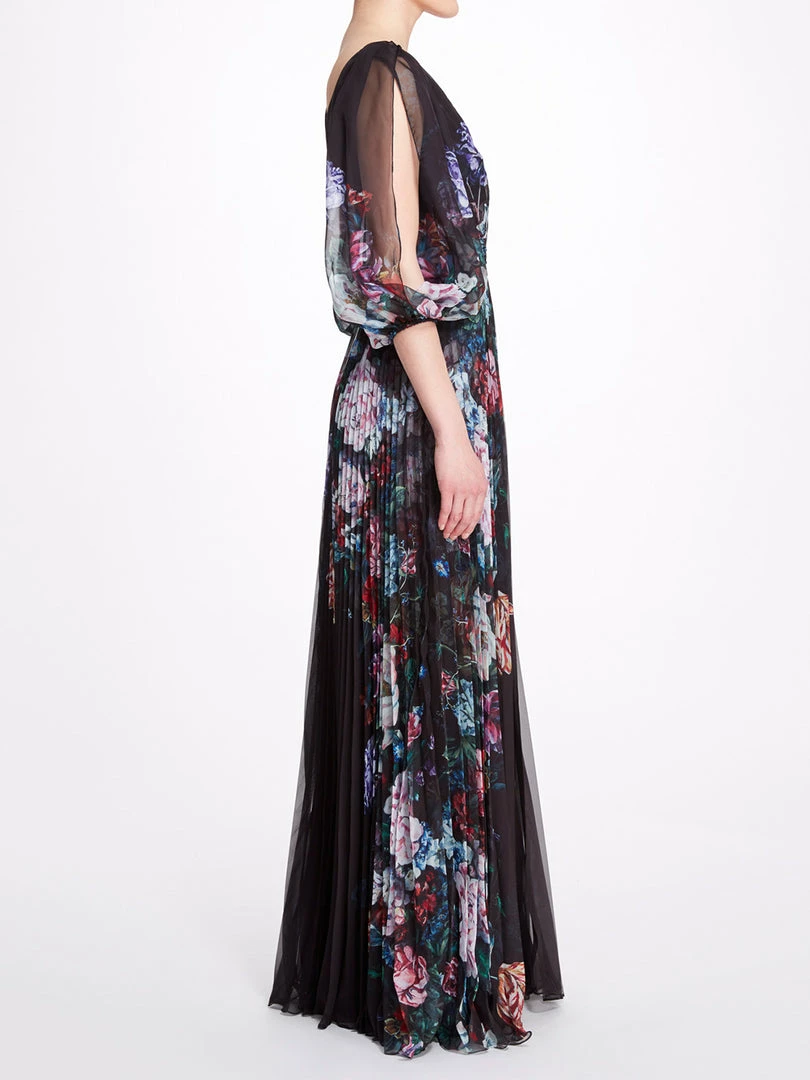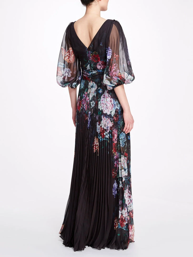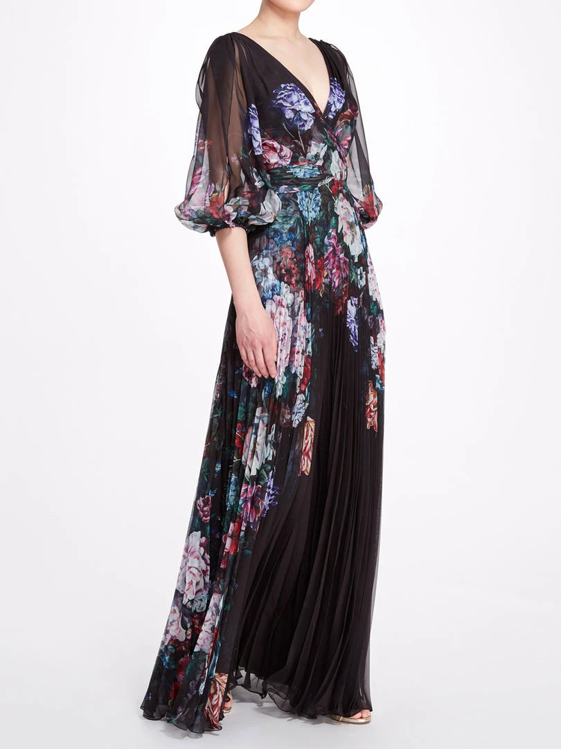 Marchesa Notte Floral V Neck Gown