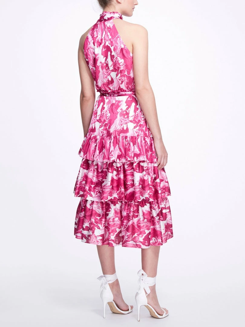 Pour paint high neck tiered ruffle midi dress