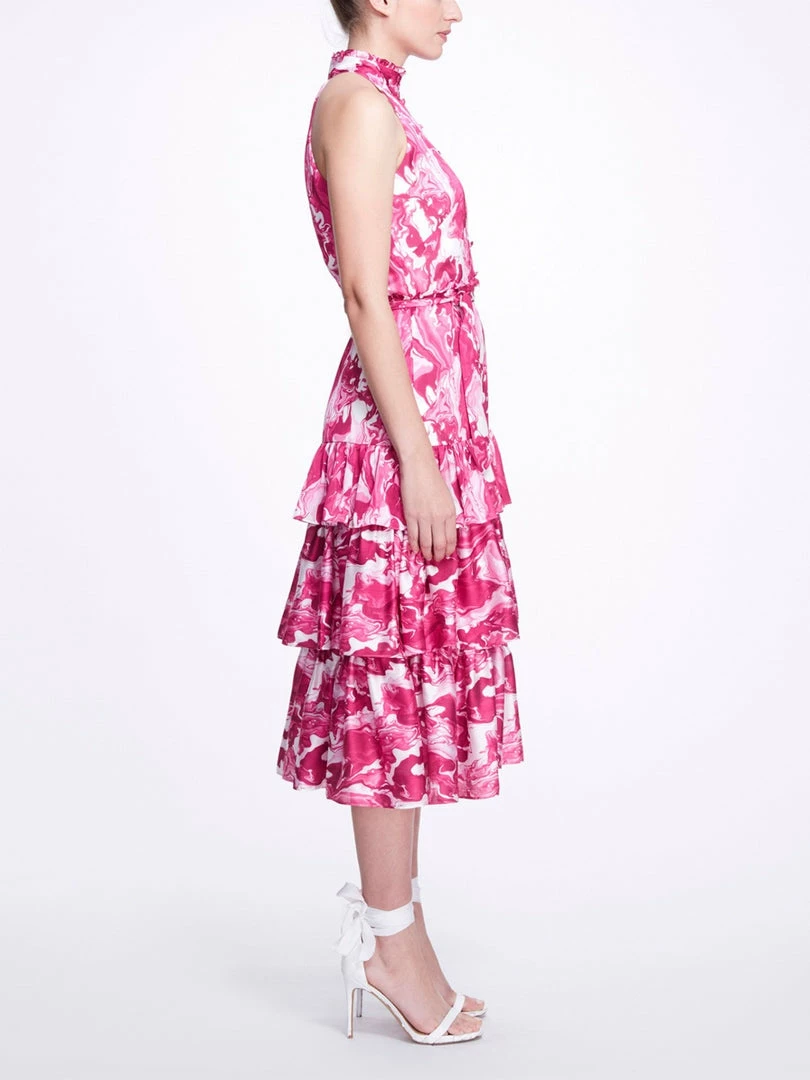 Marchesa Notte Pour Paint High Neck Ruffle Dress