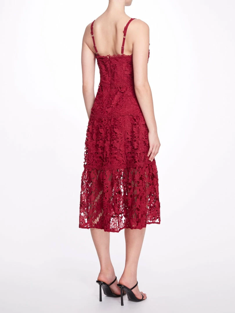 Marchesa Notte Sleeveless 3D Guipure Lace Midi Dress