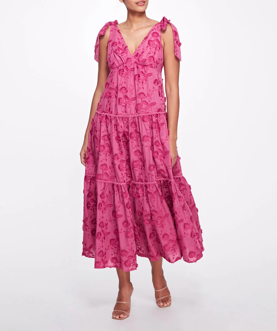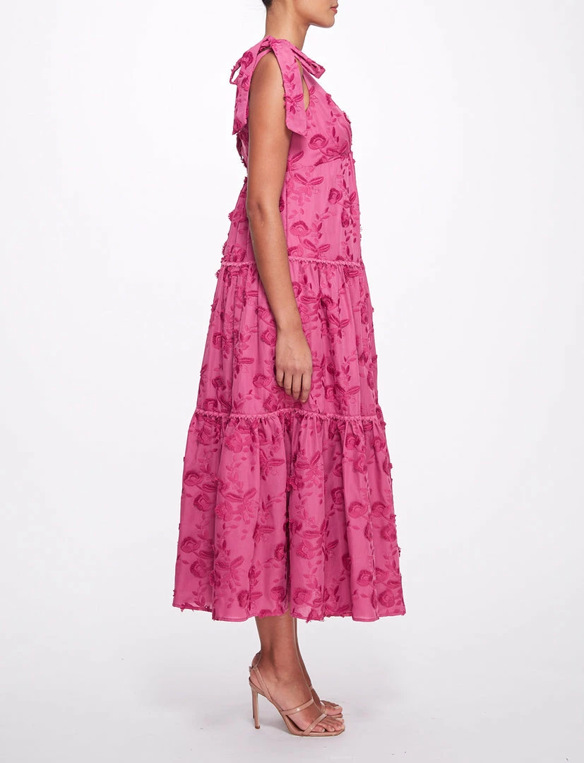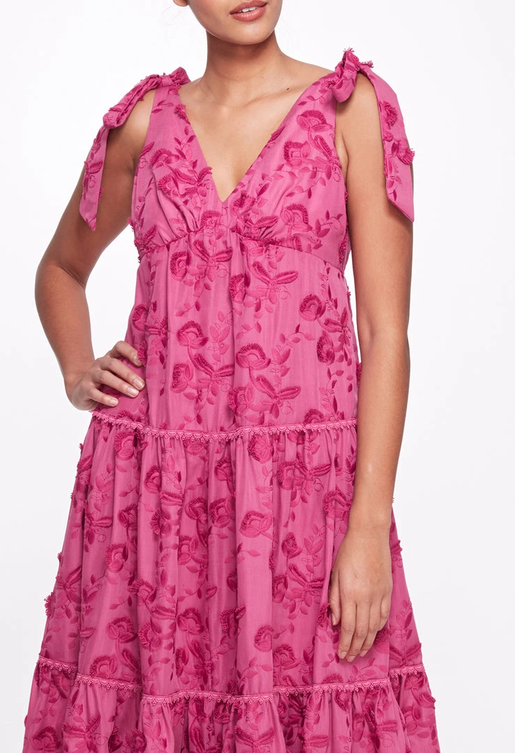 Sleeveless tie strap empire waist 3d tulips on cotton maxi dress